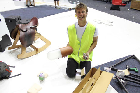 We designed the work for the fair so that it could be flat packed for transport and be light and compact. Not only was this to make a lower carbon footprint for our stand, but taking all the work and exhibition materials over as luggage allowed us extra time to work on the pieces and make some last minute refinements. We reached maximum weight with our bags, but the exhibition arrived with us fully intact with nothing missing.