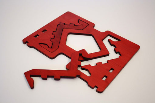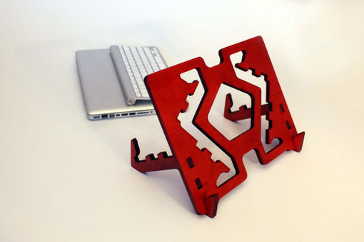The Standup Laptop Stand is normally made using an FSC certified Gaboon Marine Plywood. Due to a supply issue with this (a boat builder brought all of NZ's stock of 9mm Gaboon Marine Plywood) I've done a limited run in hoop pine and am exploring staining the timber. The first test was in red and it looks sensational! See photos below. Available from Clever Bastards soon.